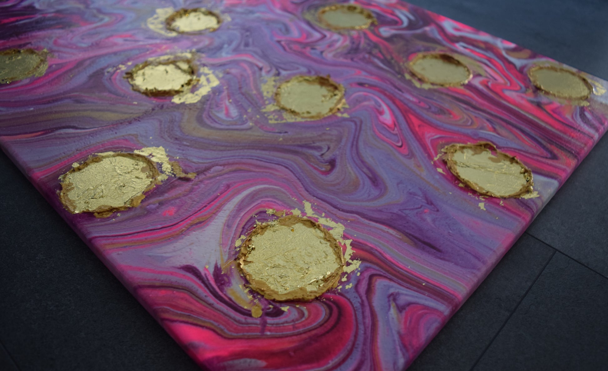 Abstraktes Unikat - Acrylpouring - Blattgoldverzierung - Handgefertigtigtes Original - Acrylbild auf Leinwand