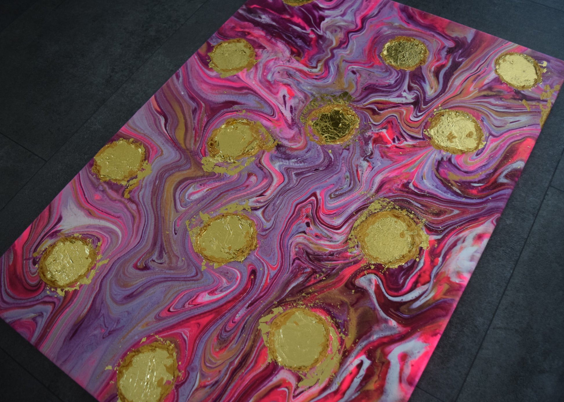 Jedes Pouring-Bild ist ein Unikat, es kann genauso nicht noch einmal hergestellt werden.