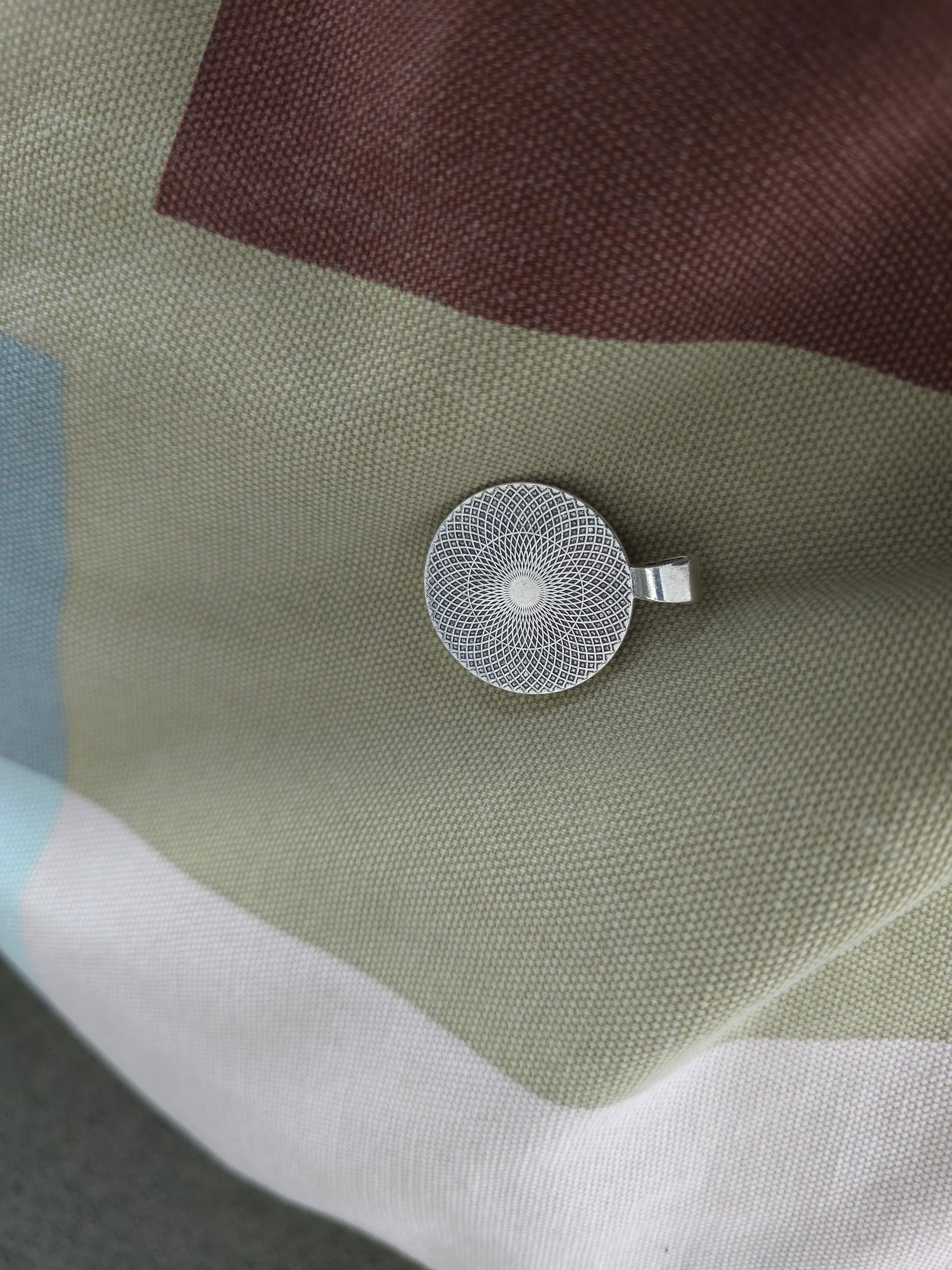 Das kleine Kunstwerk wurde mit Acrylfarbe hergestellt, passgenau in die Form eingefügt und dann mit einem Glascabochon abgedeckt.